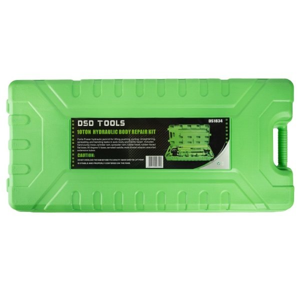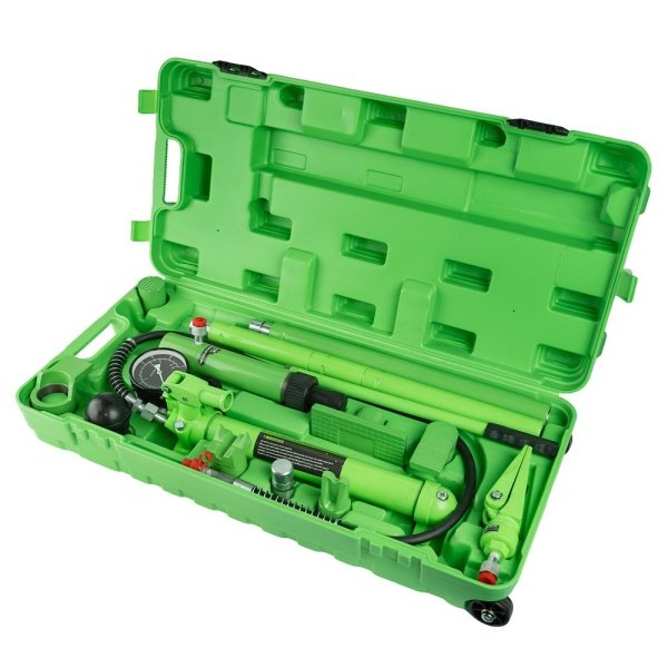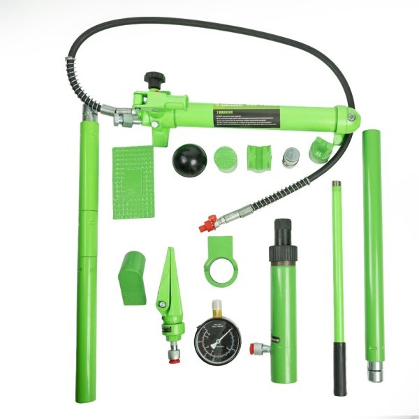 A powerful 10 Ton hydraulic porta power for body shop repairs, heavy plant repair, farming and construction. Comes complete with a selection of accessories for lifting, pushing, pulling, spreading and bending.