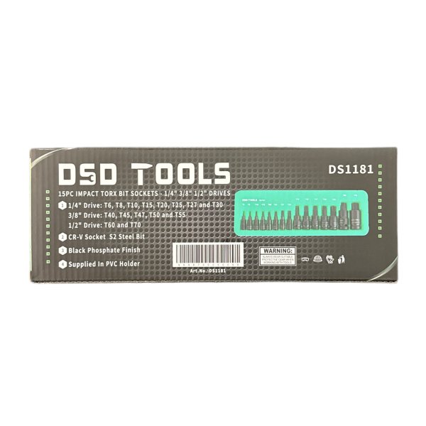 15PC IMPACT TORX BIT SOCKETS – 1/4″ 3/8″ 1/2″ DRIVES DS1181