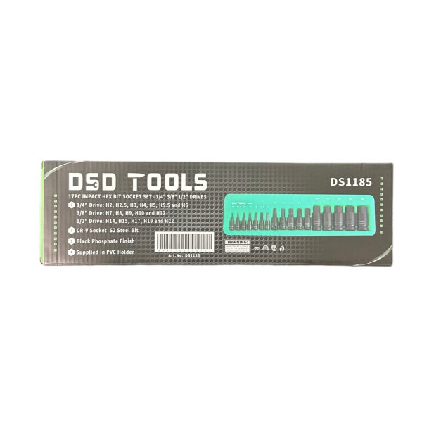 17PC IMPACT HEX BIT SOCKET SET – 1/4″ 3/8″ 1/2″ DRIVES DS1185