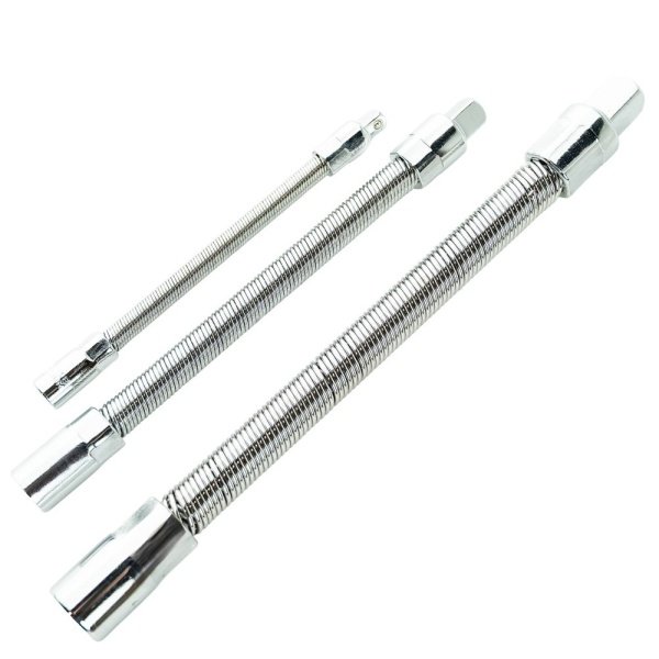 • 3/8″ Drive Extension Bars. Lengths: 1.5″, 3″, 6″ and 10″ (38, 75, 150 and 250mm)