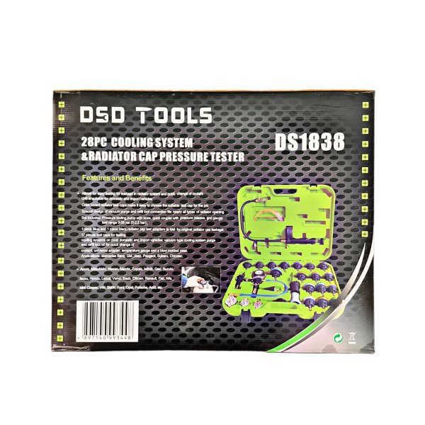 28PC COOLANT SYSTEM PRESSURE TESTER & REFILL KIT DS1838