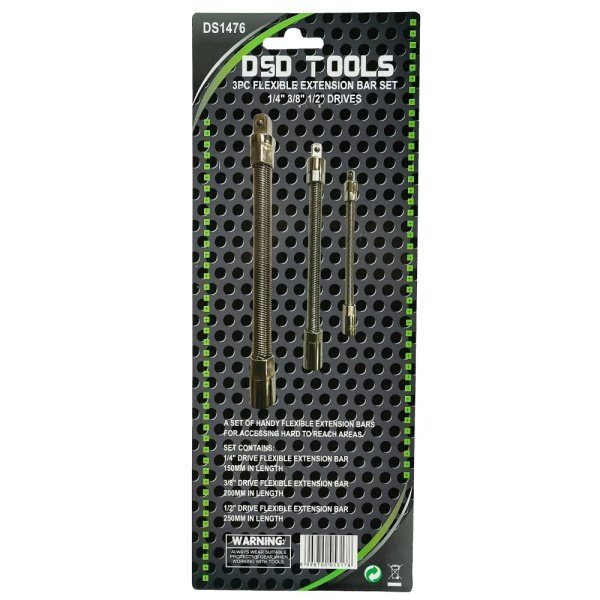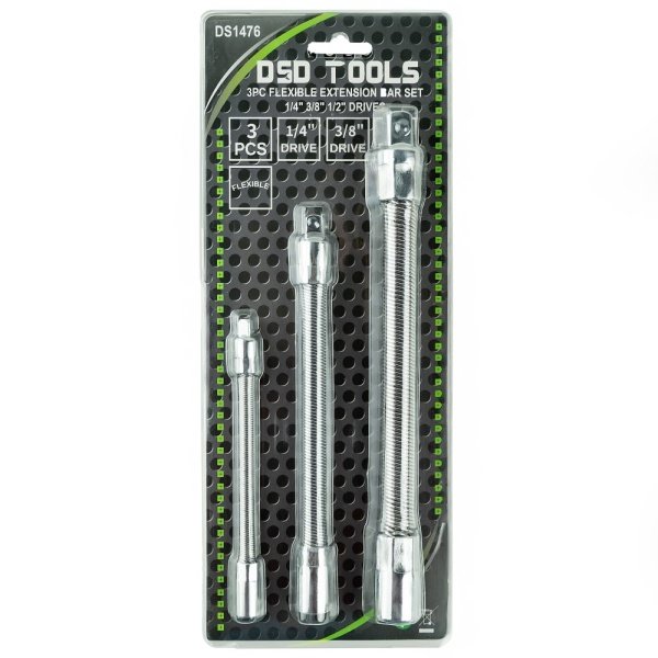 3PC FLEXIBLE EXTENSION BAR SET – 1/4″ 3/8″ 1/2″ DRIVES DS1476