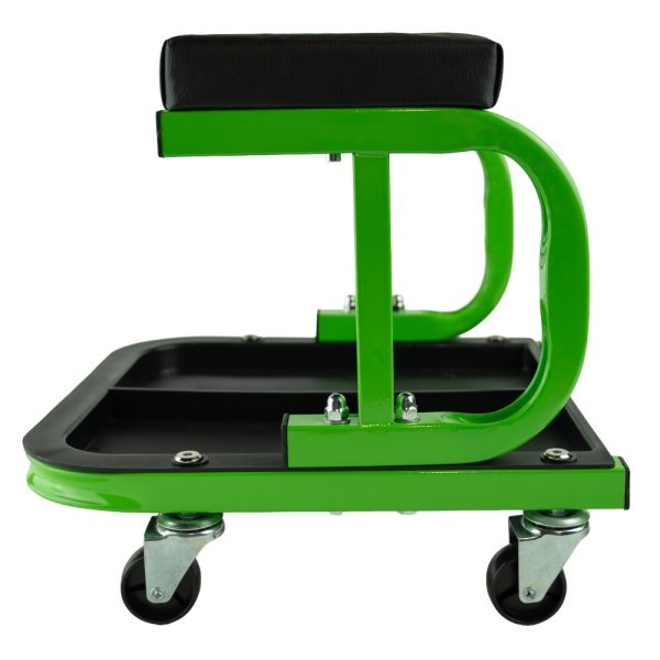 A mechanics rolling stool with storage tray for tools or parts. Fitted with 4 swivel castors for mobility.