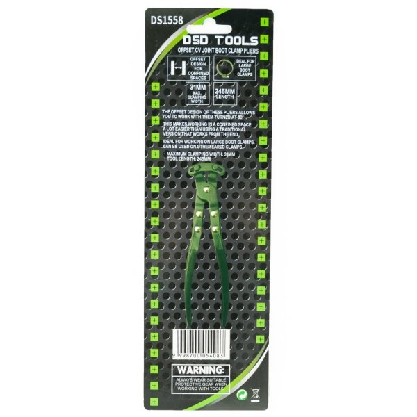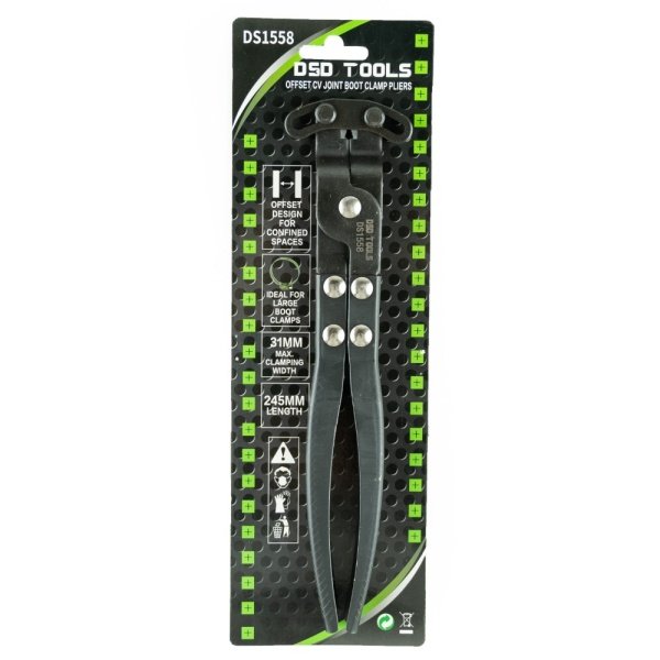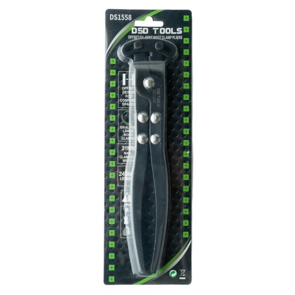 The offset design of these pliers allows you to work with them turned at 90°. This makes working in a confined space a lot easier than using a traditional version that works from the end. Ideal for working on large boot clamps. Can be used on other eared clamps.
